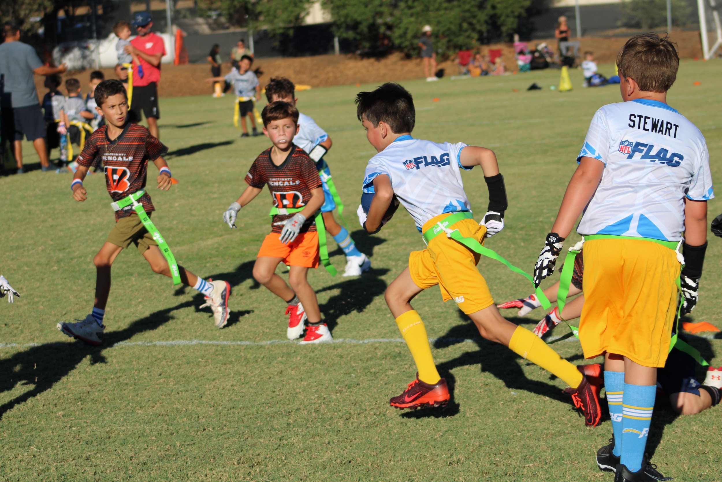 Yes! VC NFL Flag believes in equal playing time and creating a positive experience for all kids—regardless of skill level. For recreational divisions, all players will play a minimum of 2 quarters each game.